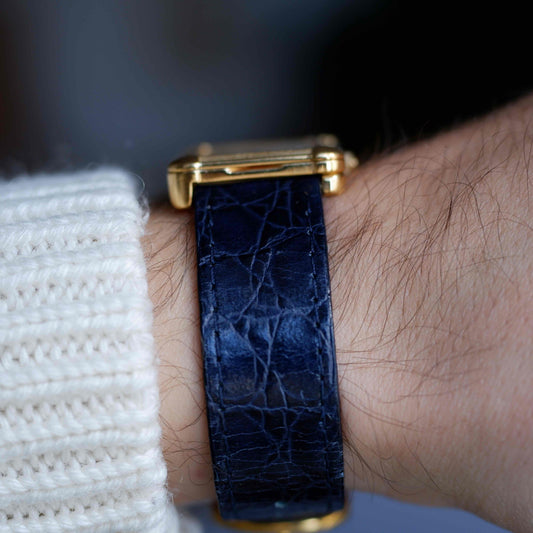 Vintage Bulova Tank Longchamp Watch 70s Blue Dial Swiss Manual Wind