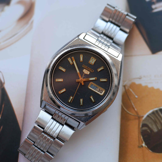 Vintage Seiko 5 Automatic Blue Structured Dial from the 80s