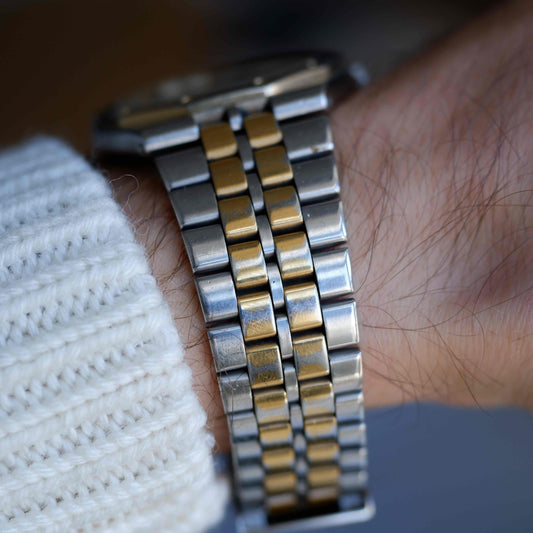 Vintage Seiko SQ 100 Ref. 5Y23-8210 Two-Tone Waffle Dial Day-Date 80s