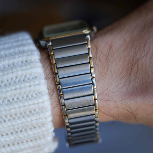 Vintage Orient Tank Style Gray Dial Two-Tone Quartz 80s