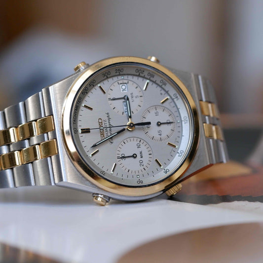 Vintage Seiko Quartz Date 90s Two-Tone Steel White Dial Japan Classic
