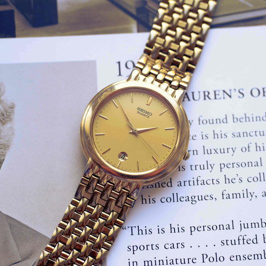 • Vintage Seiko Gold-Tone Quartz Watch 80s Minimalist Champagne Dial