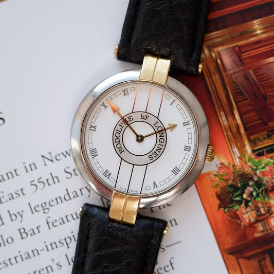 • Vintage Longines Rodolphe Watch 80s Gold Two Tone White Dial