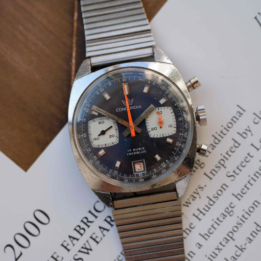 Vintage Concordia Chronograph Valjoux 7734 Blue Dial from the 60s