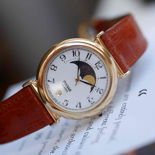 Vintage Pulsar Moon Phase Dress Watch 90s Gold Quartz