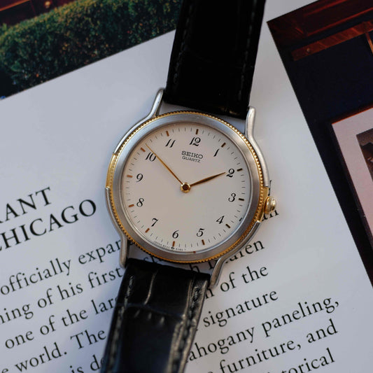 Vintage Seiko Dress Watch 90s Two Tone Ivory Dial Quartz