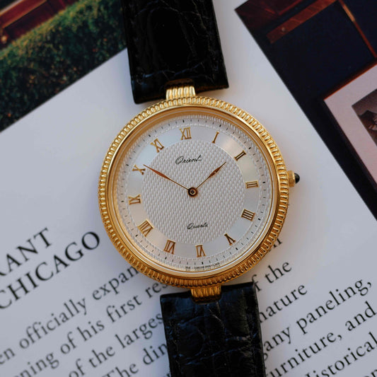 Vintage Orient Dress Watch Guilloche Dial Golden 80s Mint