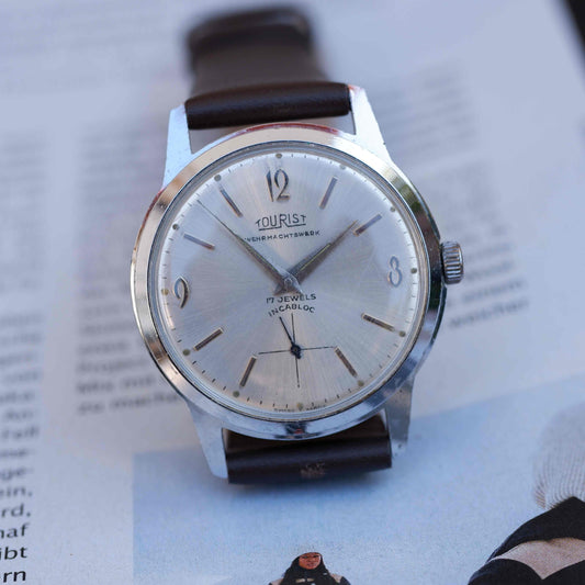 Vintage Tourist Dress Watch 60s Mechanical White Sunburst Dial