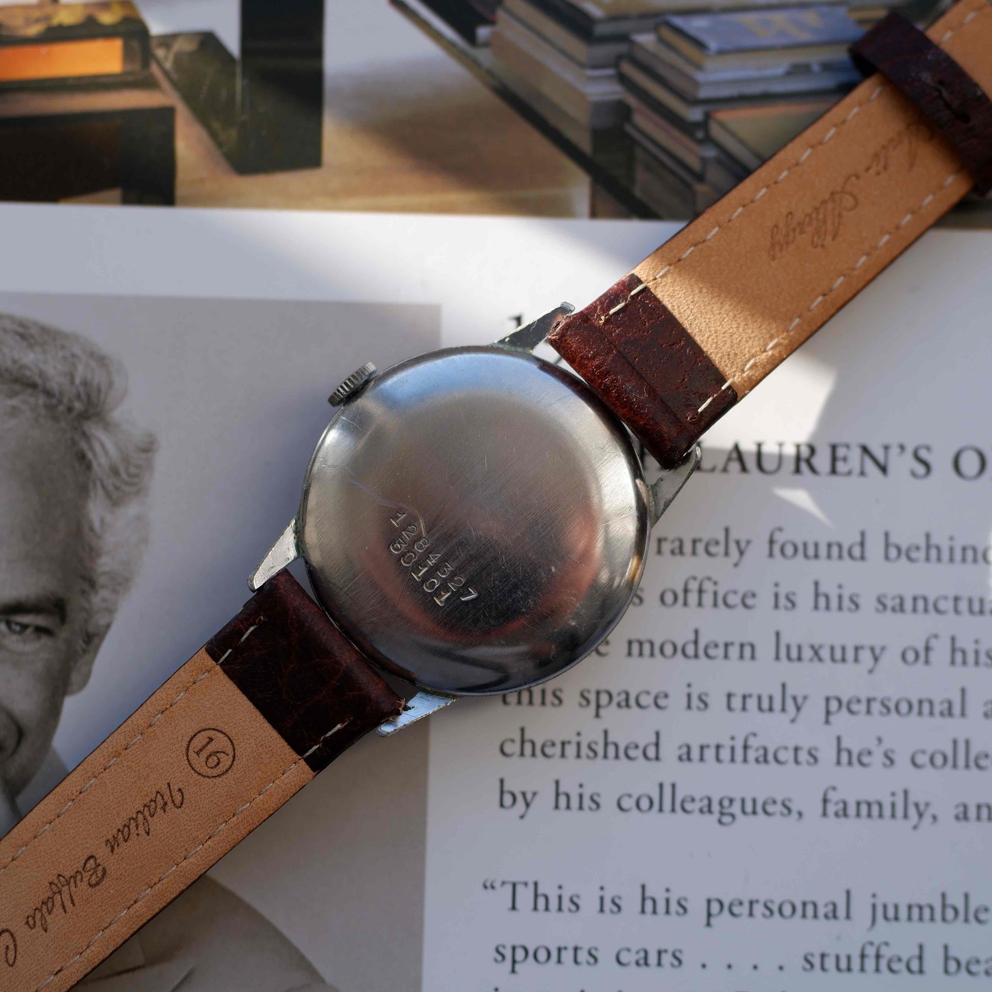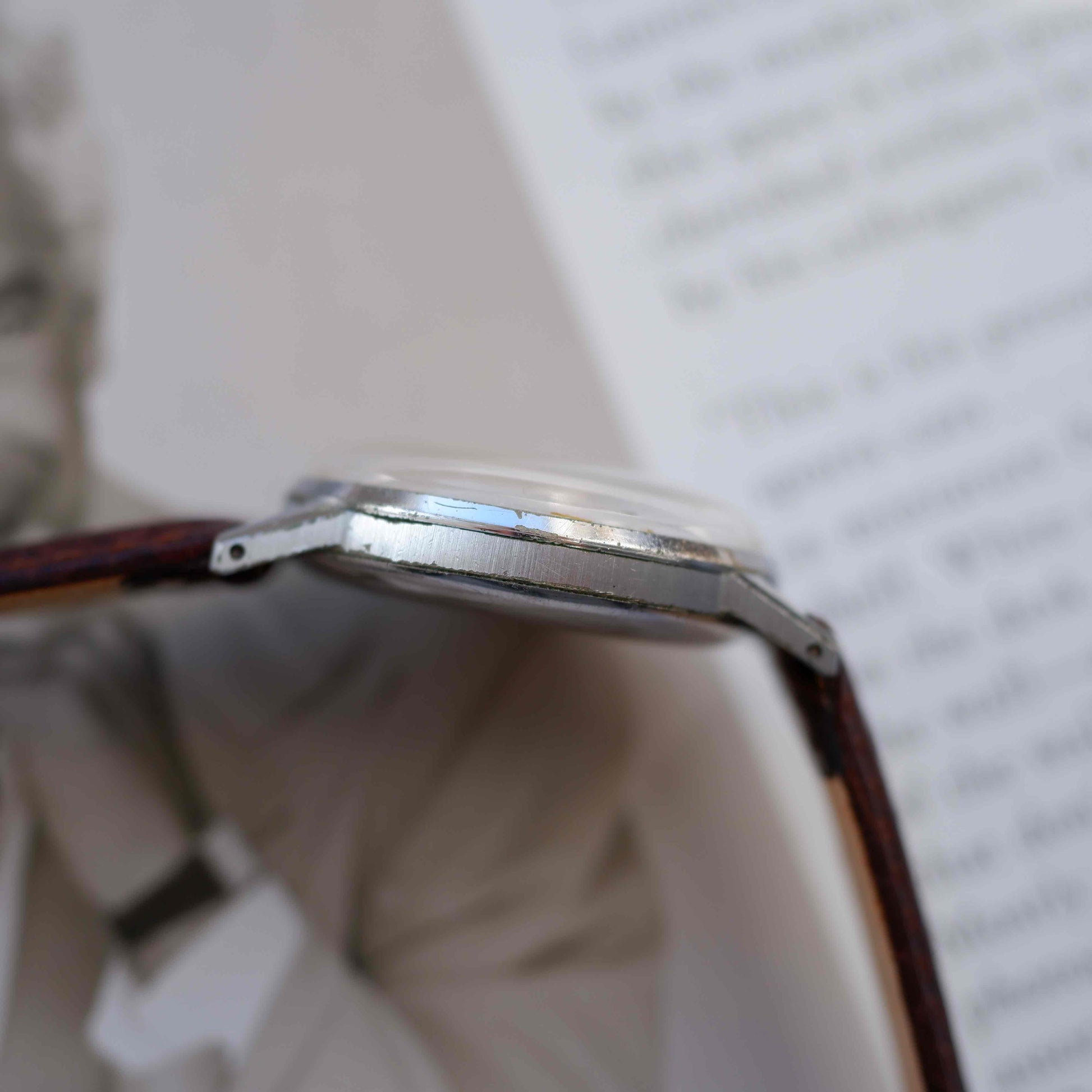 Rather than carrying overt branding, Uweco pieces were defined by their quality and restraint. The clean dial layout, blued hands, and balanced proportions reflect the functional elegance Universal Genève was known for in the 1940s. The dial shows gentle, honest aging, while the chromed steel case bears wear consistent with its age, adding character rather than distraction.