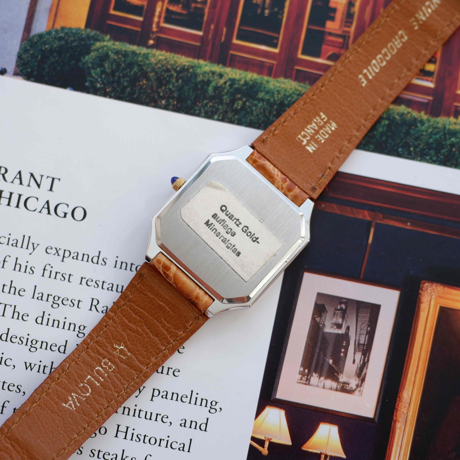 Vintage Bulova Longchamp 80s Sparkling Champagne Dial Octagonal Case NOS