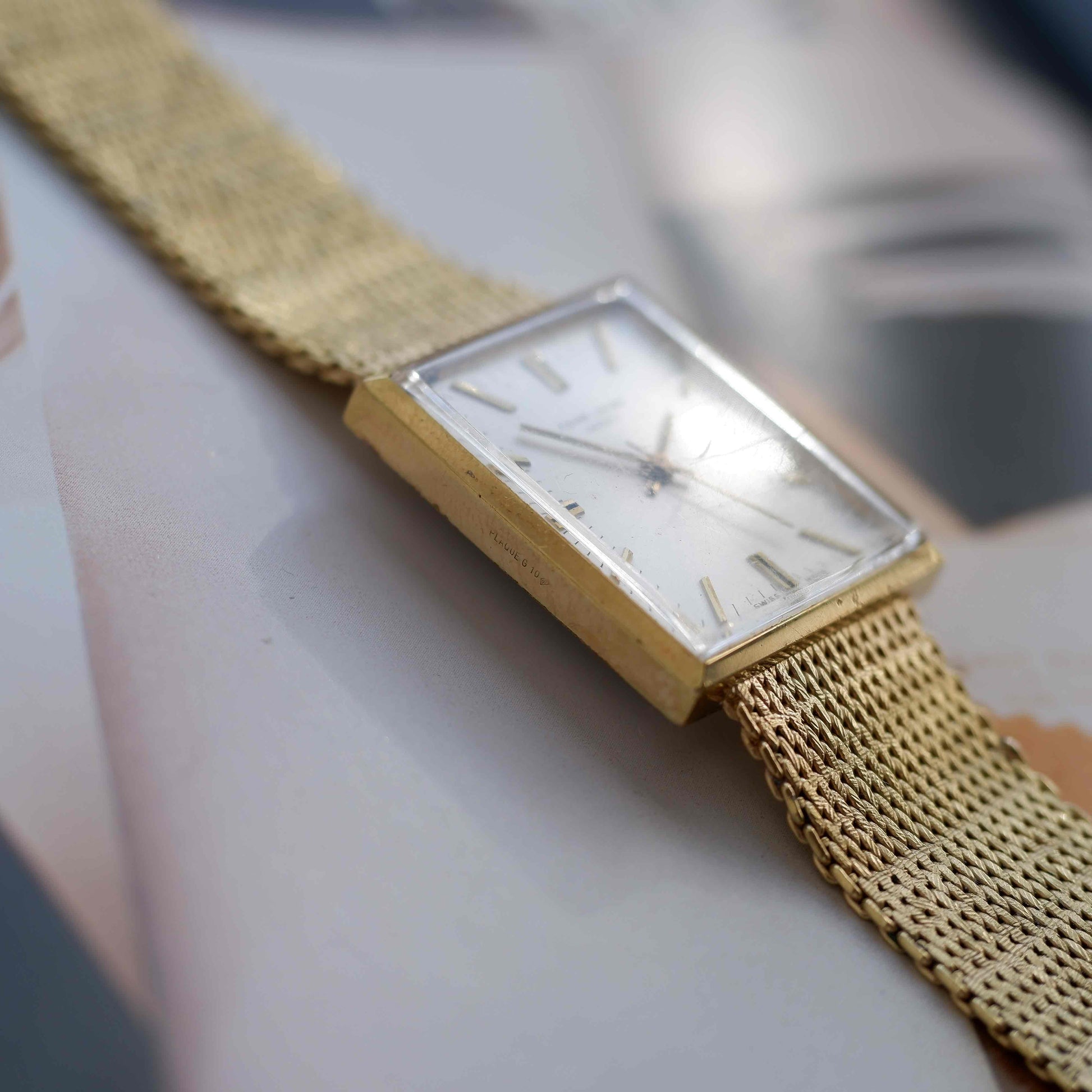 Vintage Favre-Leuba 70s Swiss Mechanical Tank Watch Golden Mesh Bracelet