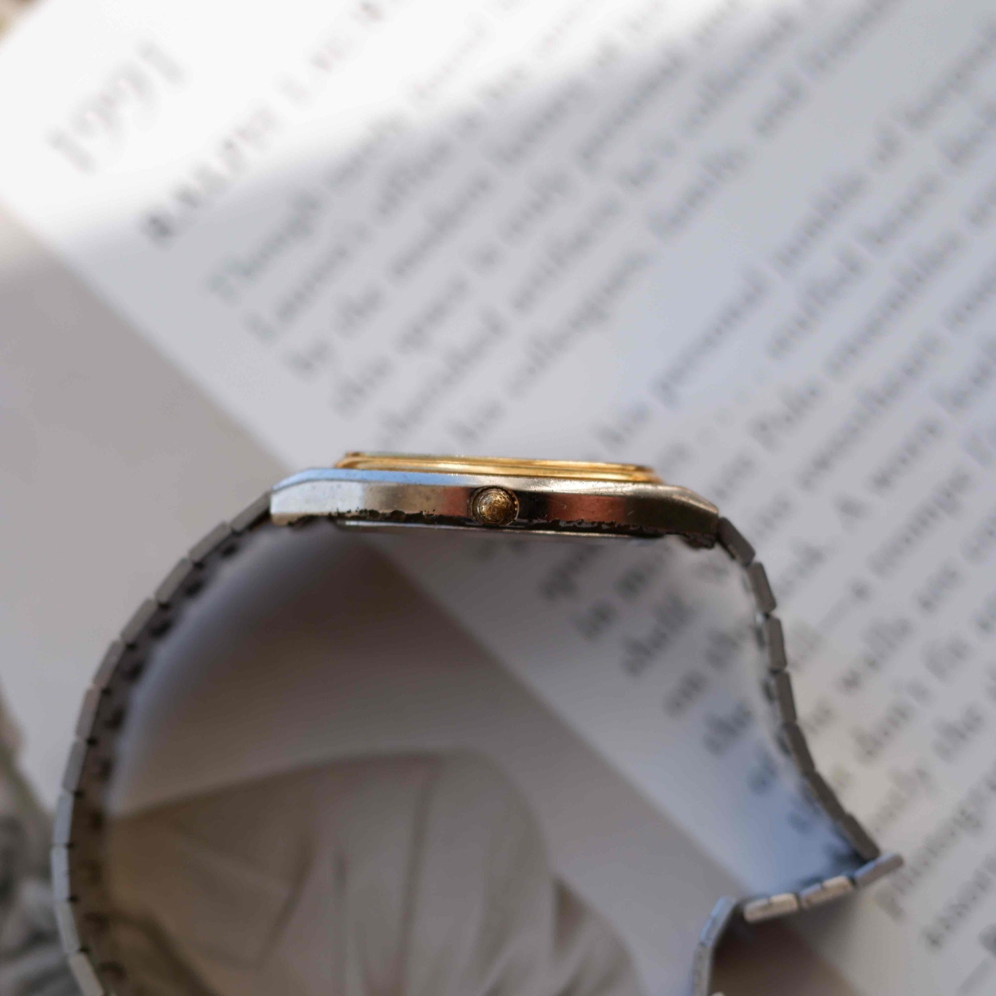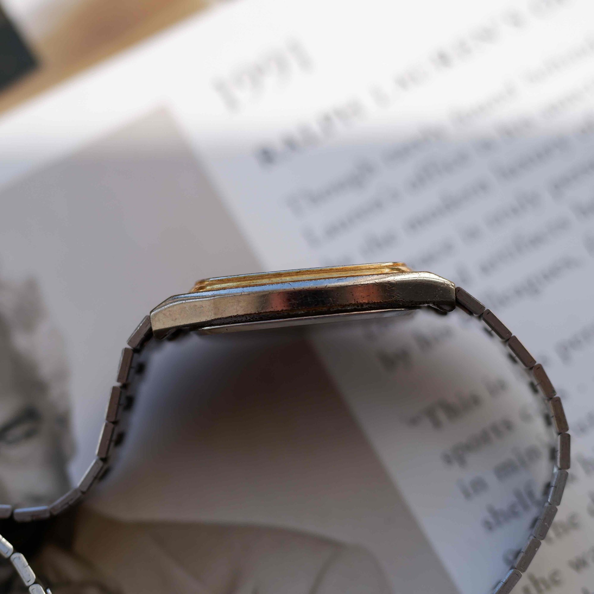 The integrated two-tone bracelet anchors the watch firmly in its era and gives it a strong visual identity on the wrist. It wears light, sits flat, and works just as well dressed up as it does casually. This is a good example of how 1970s design could feel modern without trying too hard — functional, elegant, and quietly confident.