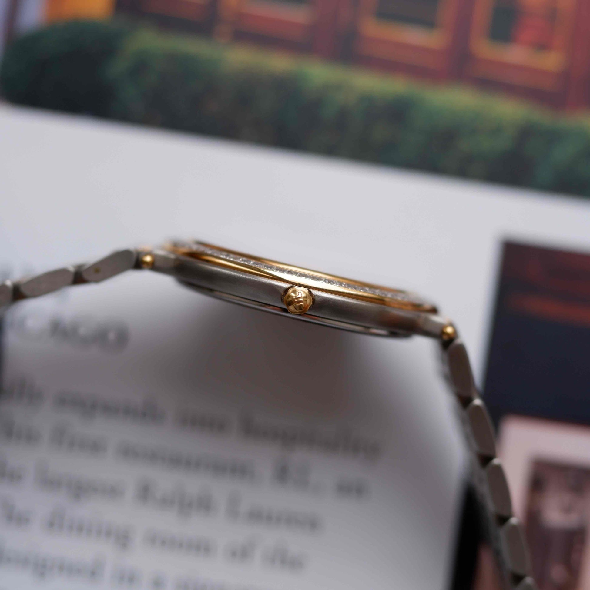 NOS and unused, complete with original hangtags. The dial and crystal are flawless, the two-tone case and bracelet show no signs of wear, and the Swiss quartz movement runs perfectly. This watch has been carefully preserved to maintain its originality.