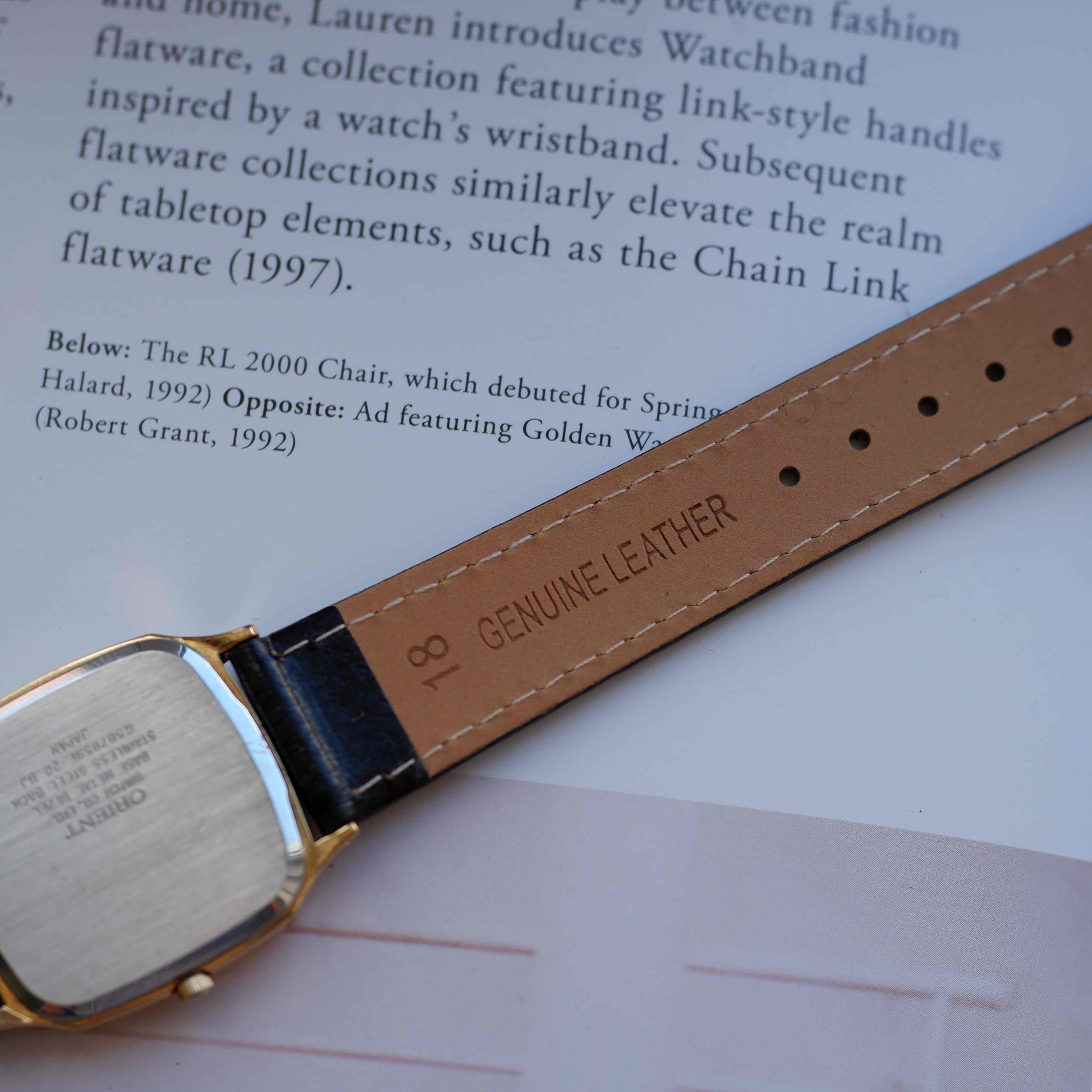Built with a high-quality Japanese quartz movement, it embodies Orient’s long-standing commitment to craftsmanship and value. The discreet date window and gold-tone case complete the look — a dress watch that captures the quiet elegance of Japan’s golden design era.