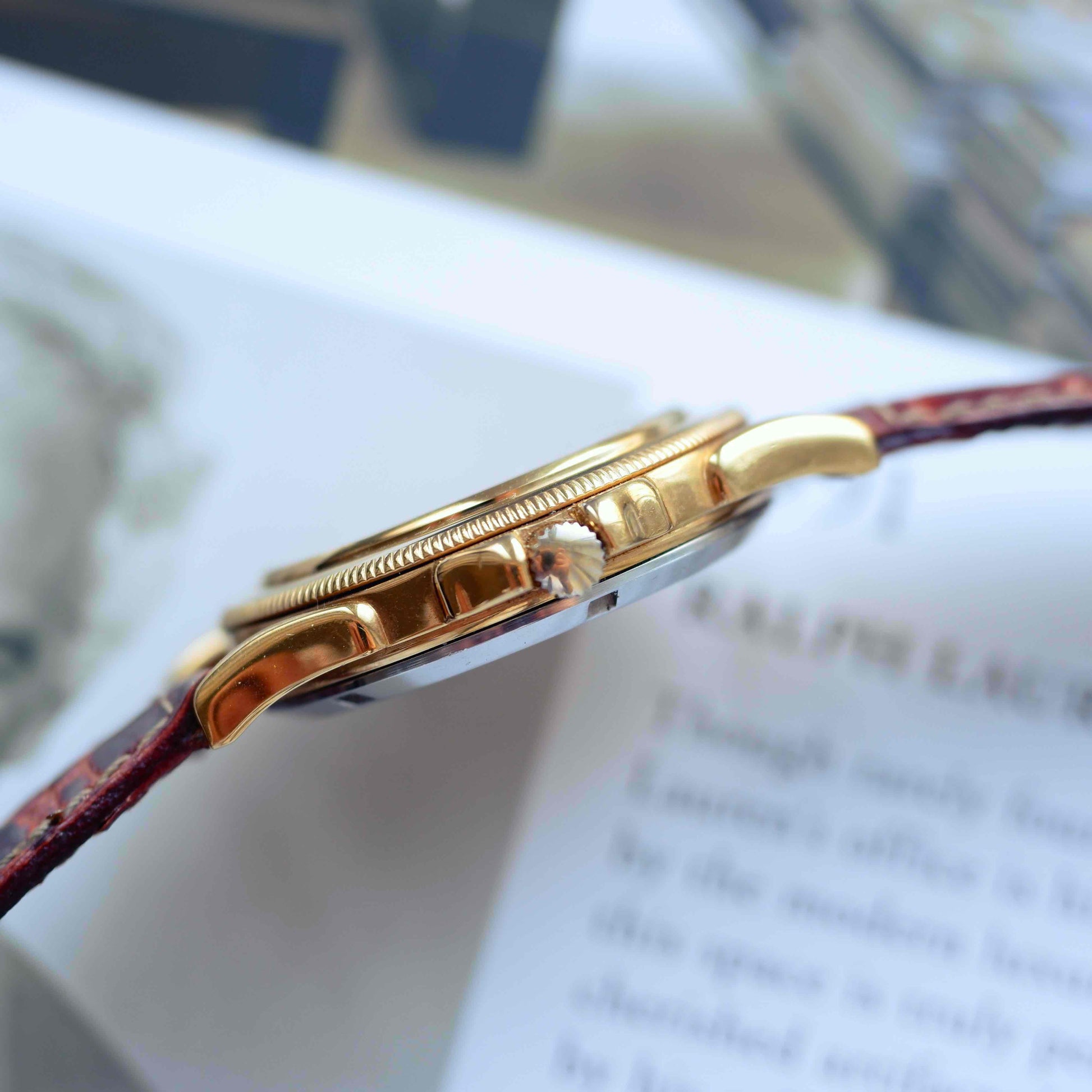 In great condition with no scratches on the watch crystal. Gold-Plating in perfect condition. Little to no wear on the watch itself. The movement has been professionally tested and is running perfectly. This watch has been carefully preserved to maintain its originality.