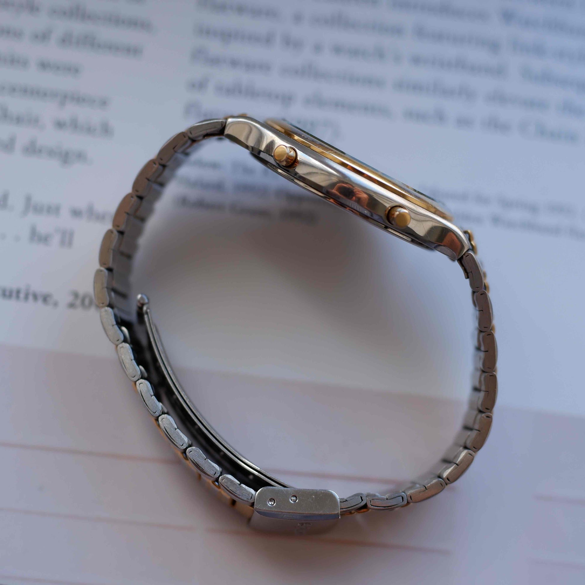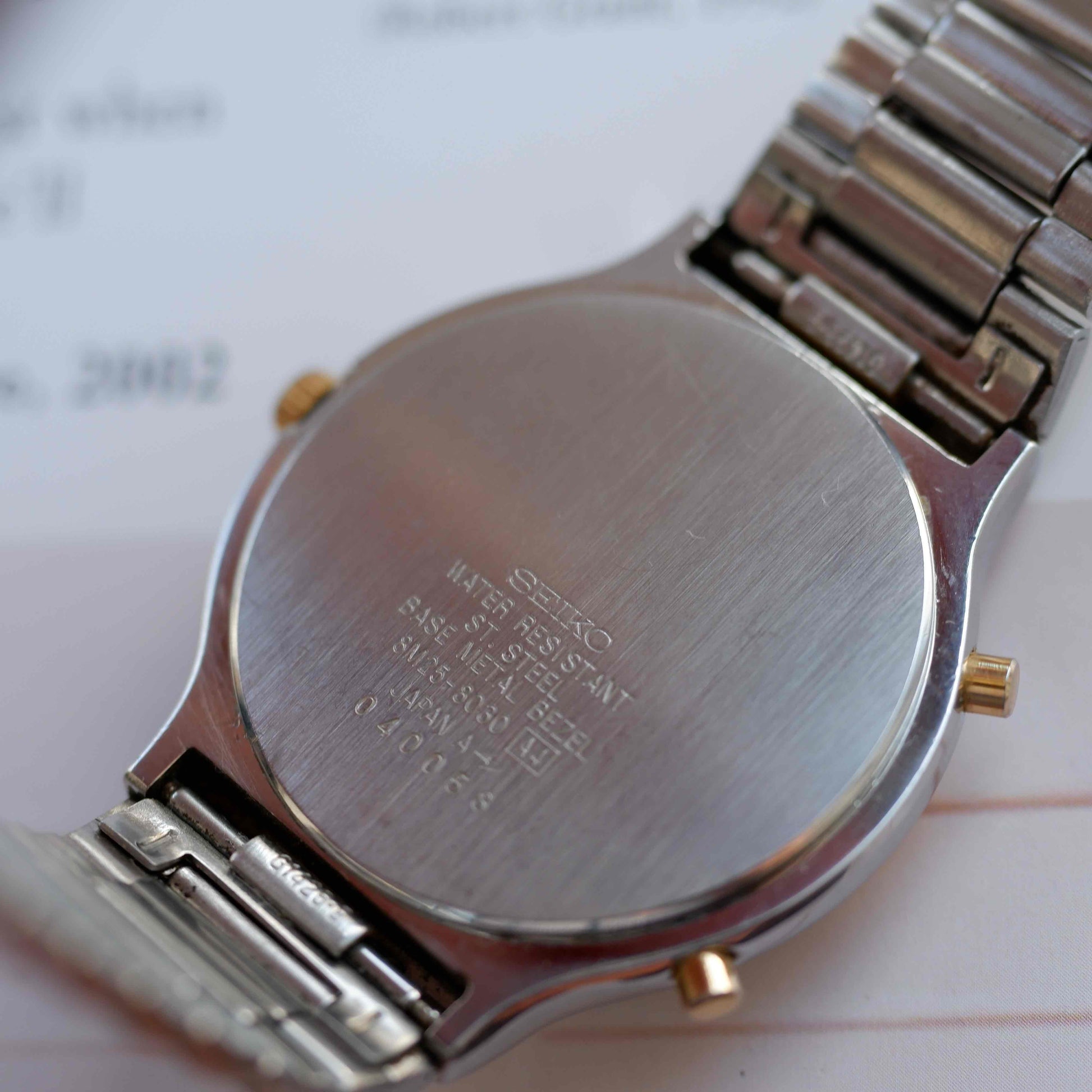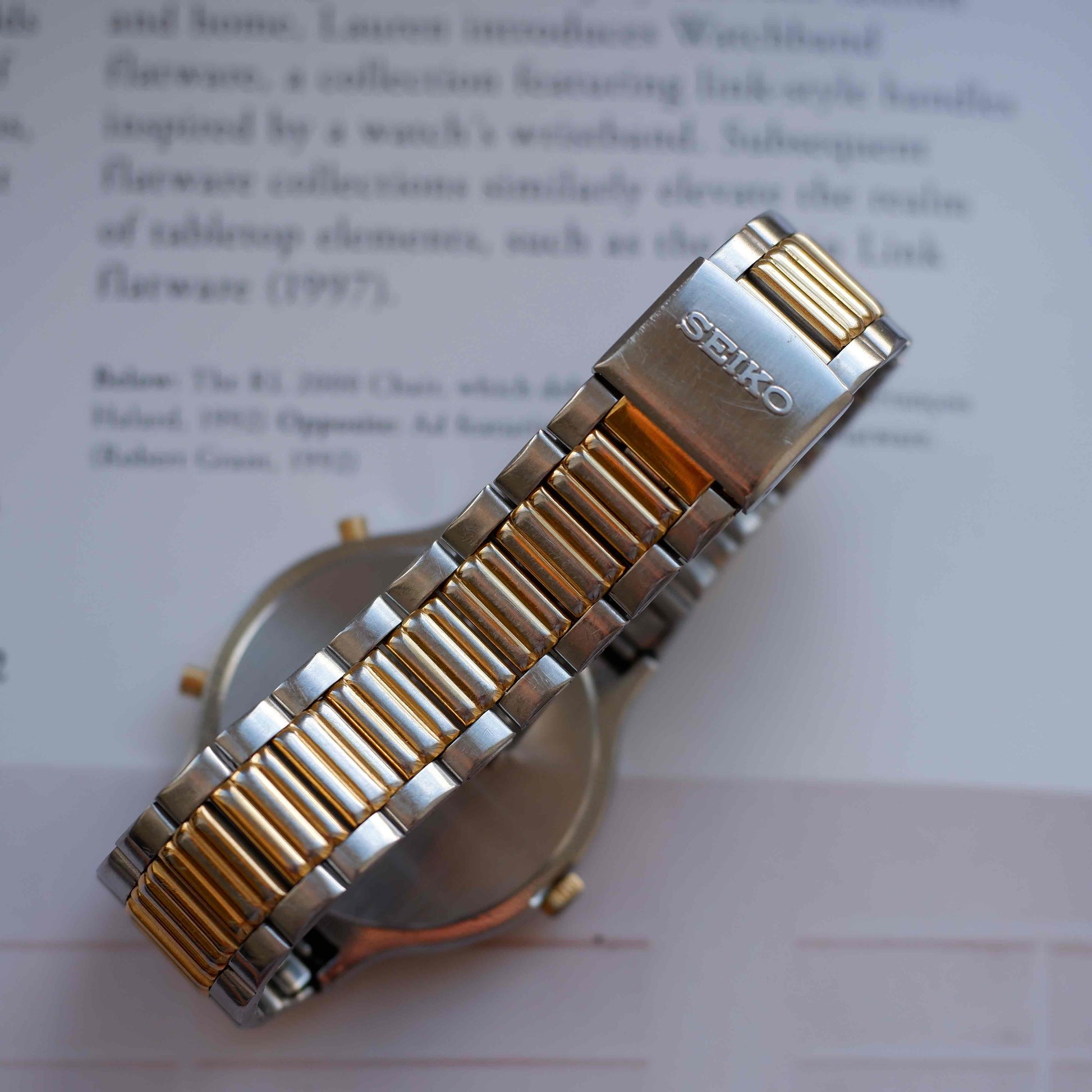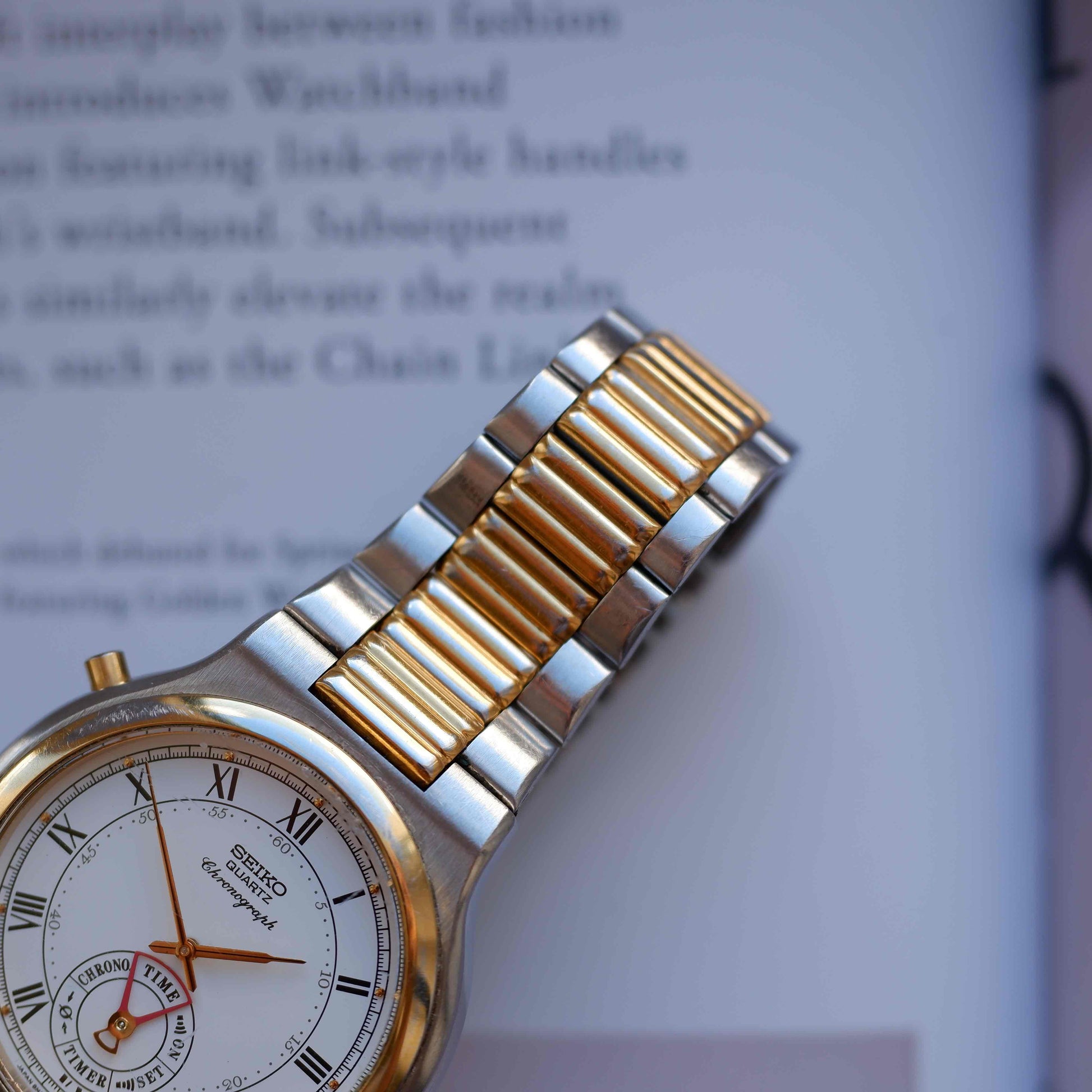 The white Roman dial gives it a timeless, almost Swiss-inspired look, while the two-tone case and bracelet provide a subtle touch of luxury. Combining classical charm with precision engineering, this model captures Seiko’s mastery of both form and function — a rare intersection of technology and style from the golden age of Japanese watchmaking.