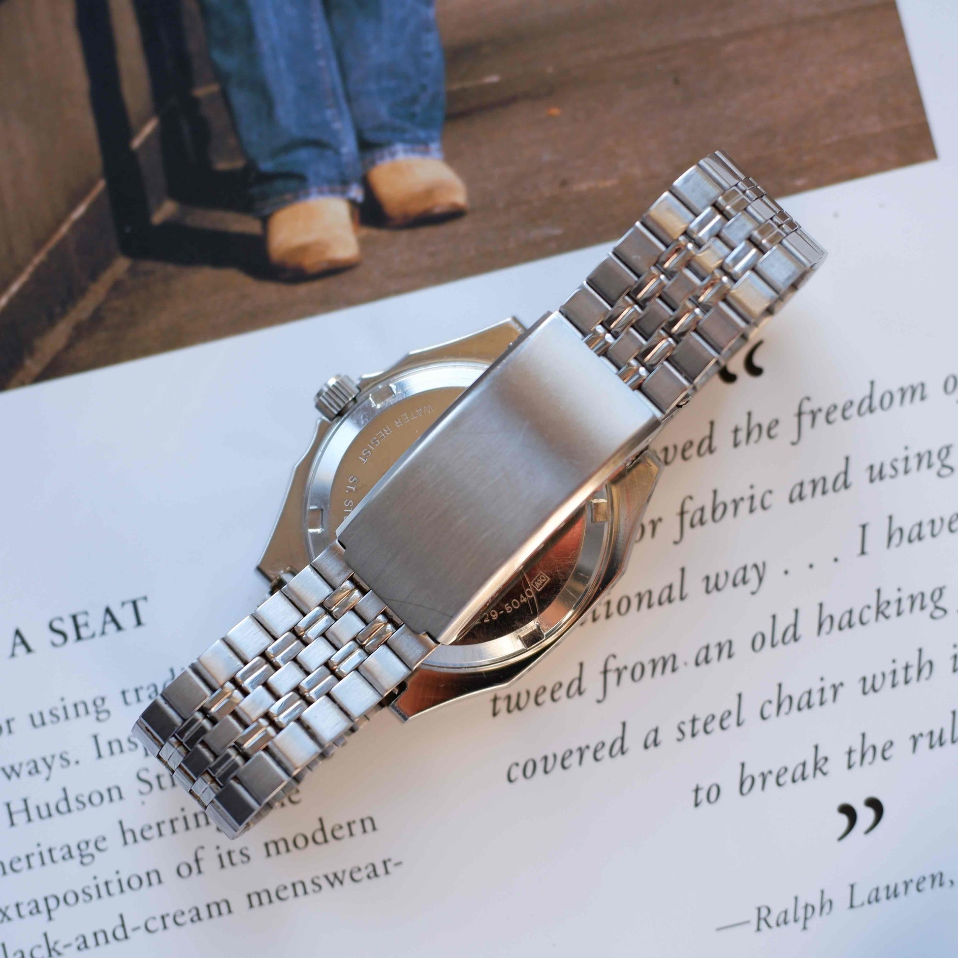 This is a statement piece for fans of vintage Japanese quartz watches who appreciate their sharp lines, robust build quality, and timeless design language. Hard to find in todays watch world.