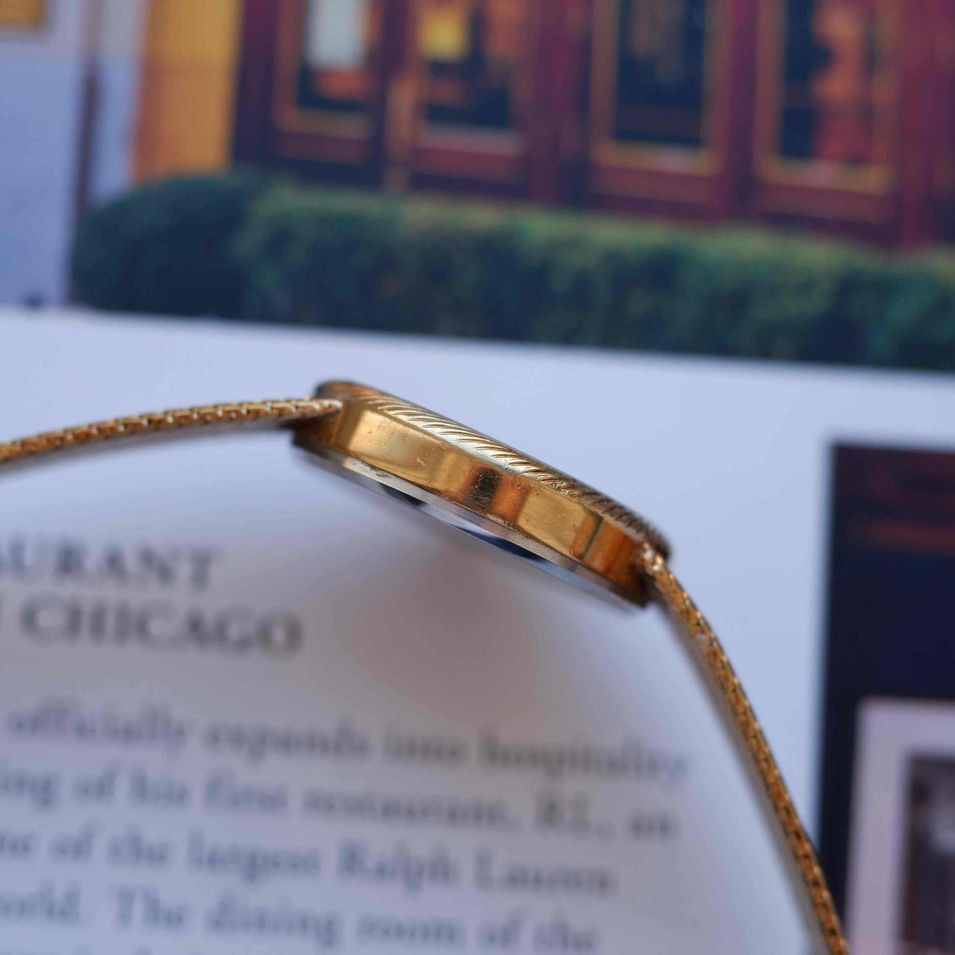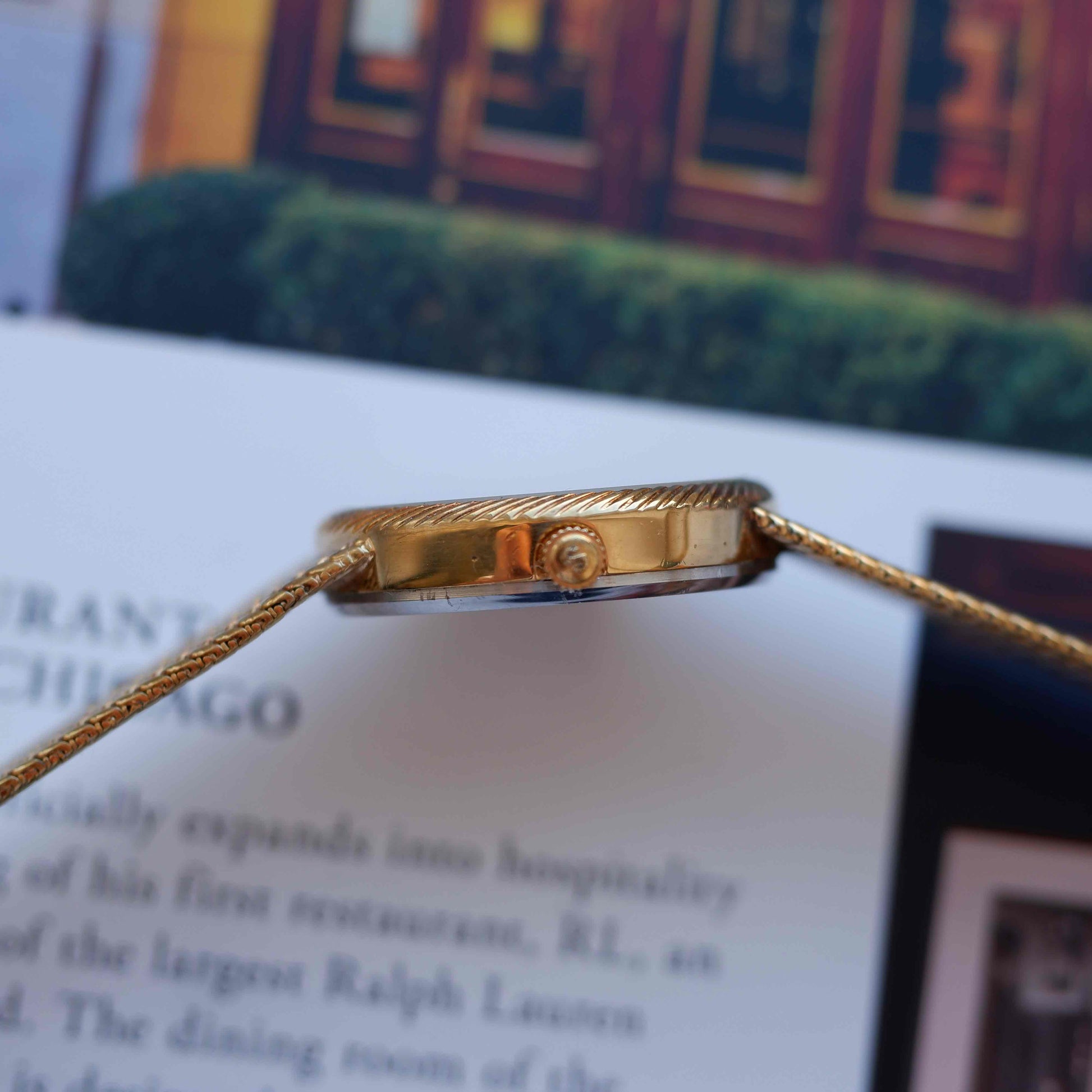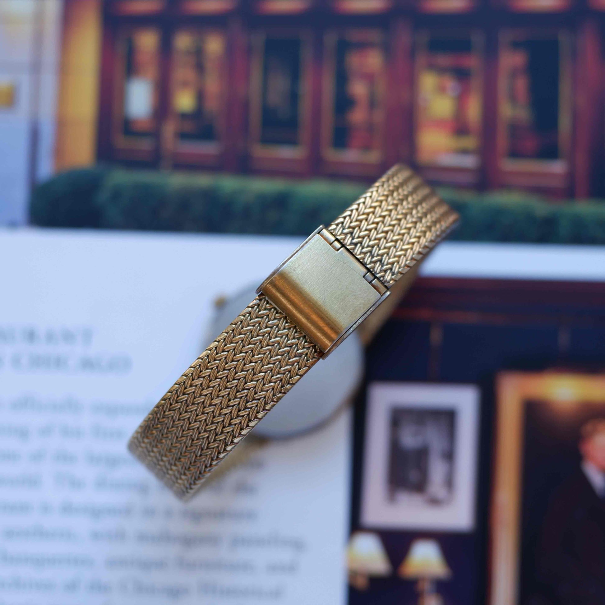 The gold-tone case and woven bracelet complete the piece with a sense of warmth and sophistication. Powered by a reliable quartz movement, it offers both accuracy and effortless style — a distinctive statement of refinement from the 1980s.