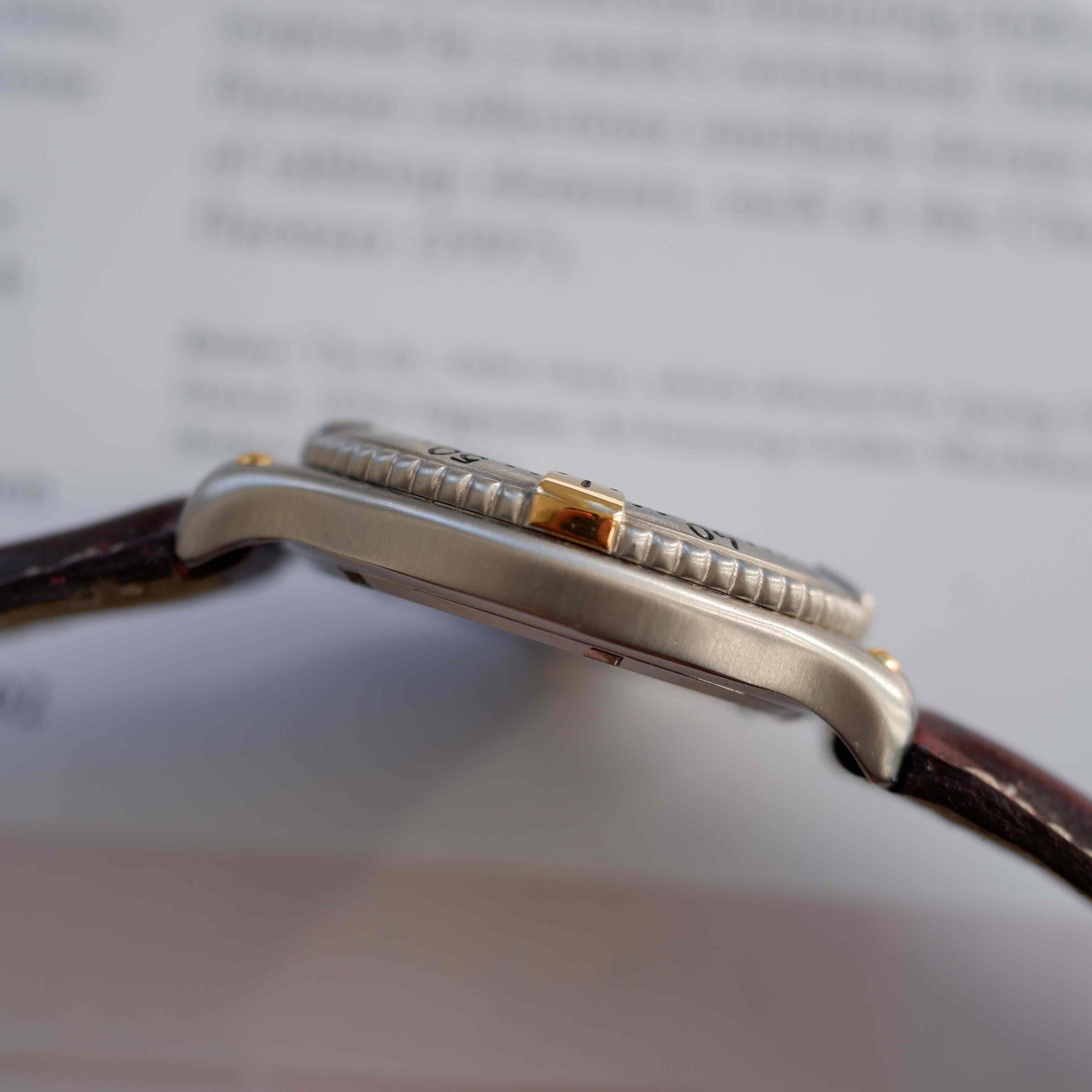 With its robust steel case, gold bezel accents, and precise Swiss quartz movement, this piece captures the spirit of 90s versatility: elegant enough for the office, confident enough for everyday wear. A pristine example of Zenith’s craftsmanship, preserved in near-new condition.